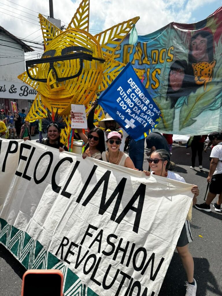 Em Belém, entendi na prática o poder de agir em rede. Graças ao Fashion Revolution, que me ensinou a conectar coletivos, pude conjugar minha atuação no instituto com o coletivo Converge Amazônia. Acessei espaços fundamentais como a Cúpula dos Povos, a Green Zone e o barco Banzeiro da Esperança (da Fundação Amazônia Sustentável e Virada Sustentável).